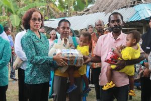Kedatangan Tim Penggerak PKK Papua dan rombongan diterima langsung Ketua TP PKK Keerom Ny. Angela T.H Gusbager untuk menyalurkan bantuan nutrisi bagi keluarga-keluarga di wilayah Distrik Arso, Arso Barat dan Skanto.