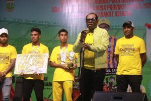 Piala yang diserahkan diterima langsung Bupati Keerom Piter Gusbager, S.Hut, MUP sebagai kado spesial Hari Ulang Tahun Ke- 23 Kabupaten Keerom. Turut hadir Wabup Keerom Drs. Daud M.Si, PLT Sekda Noak Wasanggai, Pimpinan OPD, Forkopimda, Manager Persiker dan undangan lainnya.