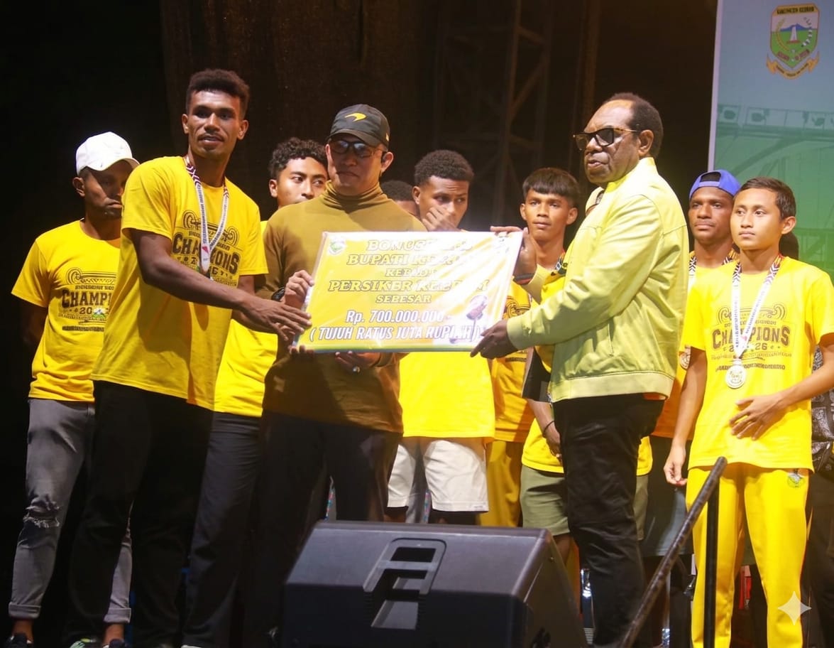Timur Update.com // Tim Sepakbola Persiker menyerahkan piala liga 4 Cendrawasih Karsa Gubernur Papua 2026 kepada Pemerintah Kabupaten Keerom, Kamis (9/4/26) yang berlangsung di Lapangan Sepakbola Asyaman, Jl. Drs. Celcius Watae, Arso Swakarsa.
