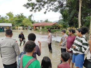 Timur Update.com // Curah hujan dengan intensitas tinggi yang terjadi sejak Minggu (15/02/2026) hingga Senin (16/02/2026) mengakibatkan meluapnya air Sungai Tami dan membanjiri kurang lebih 100 rumah warga di Kampung Arso Kota, Kabupaten Keerom. Menindaklanjuti laporan masyarakat, jajaran Polsek Arso yang dipimpin langsung oleh Kapolsek Arso AKP Yatin, S.Sos bersama personel turun ke lokasi untuk melaksanakan pemantauan dan pengecekan situasi.